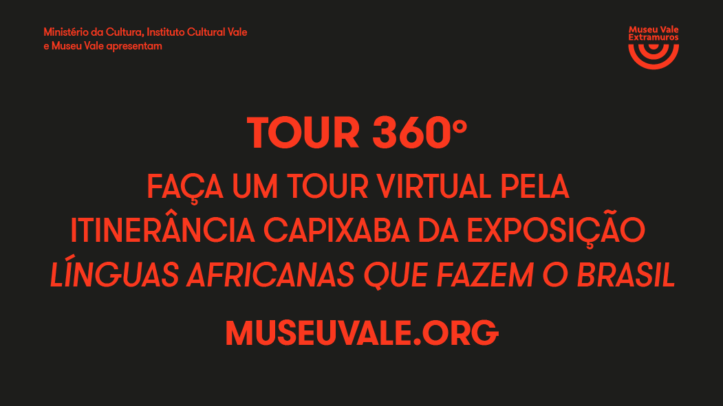 O Museu Vale, em parceria com o Museu da Língua Portuguesa, traz para o Espírito Santo a exposição Línguas africanas que fazem o Brasil, no Palácio Anchieta, sede do Governo do Estado. Com curadoria do músico e filósofo Tiganá Santana, a mostra investiga as influências das presenças africanas que se manifestam nas linguagens, no vocabulário e na pronúncia do português falado no Brasil. A edição em Vitória conta também com a contribuição inédita de artistas capixabas.